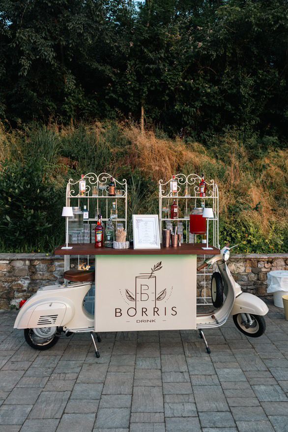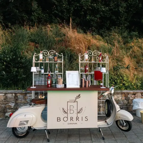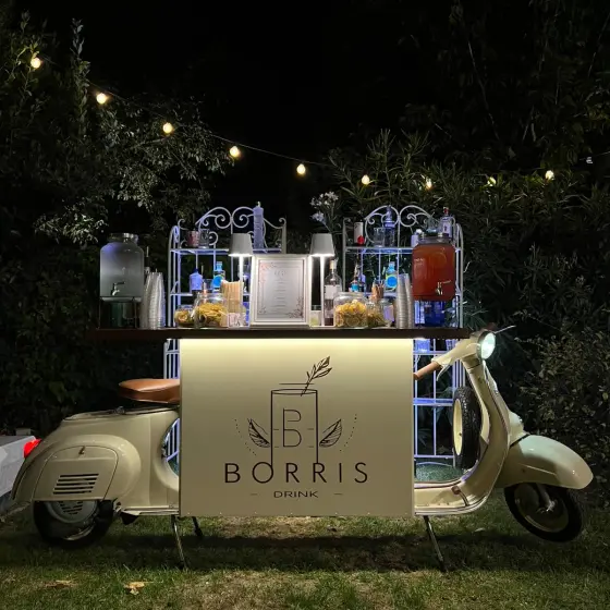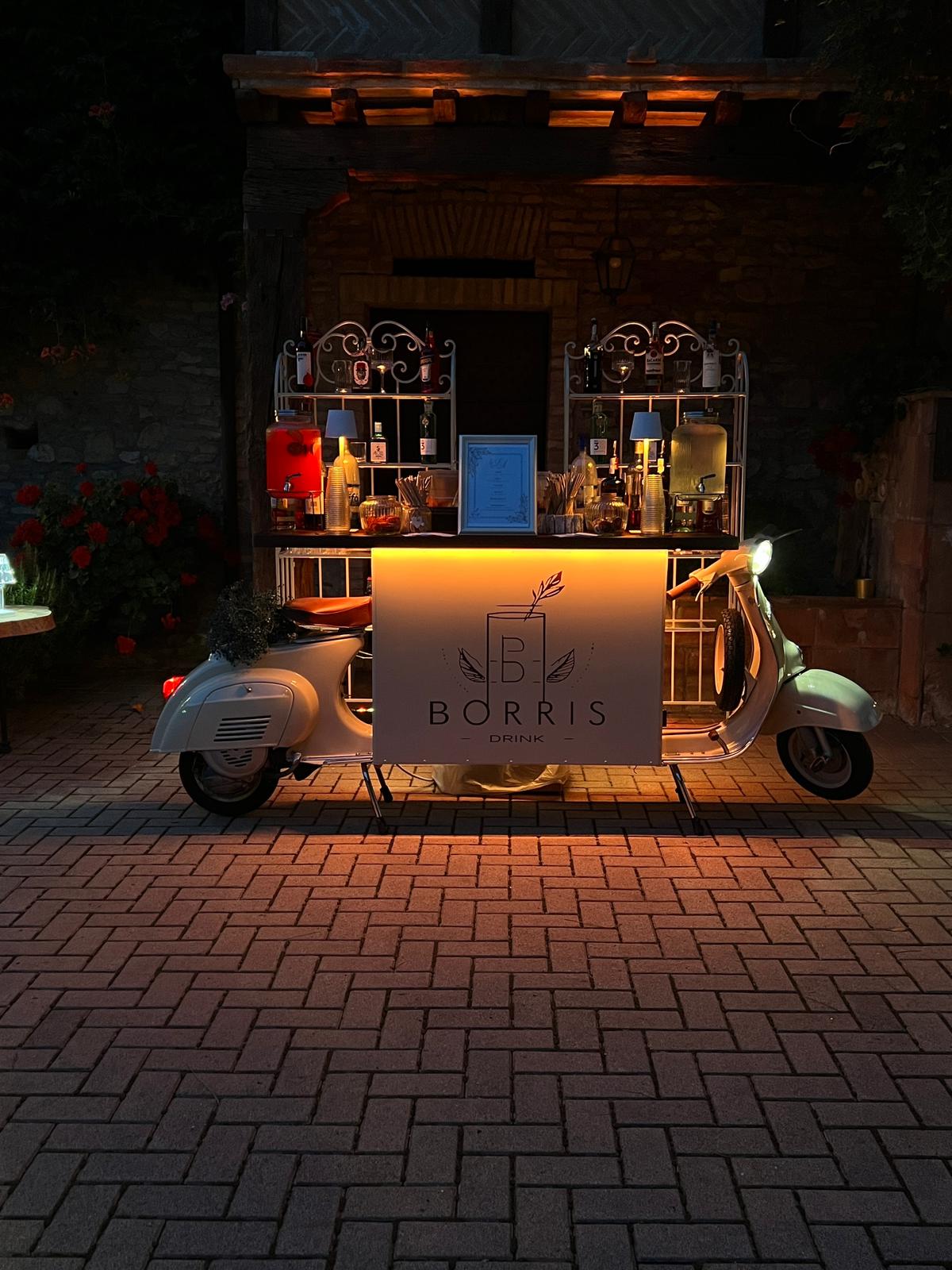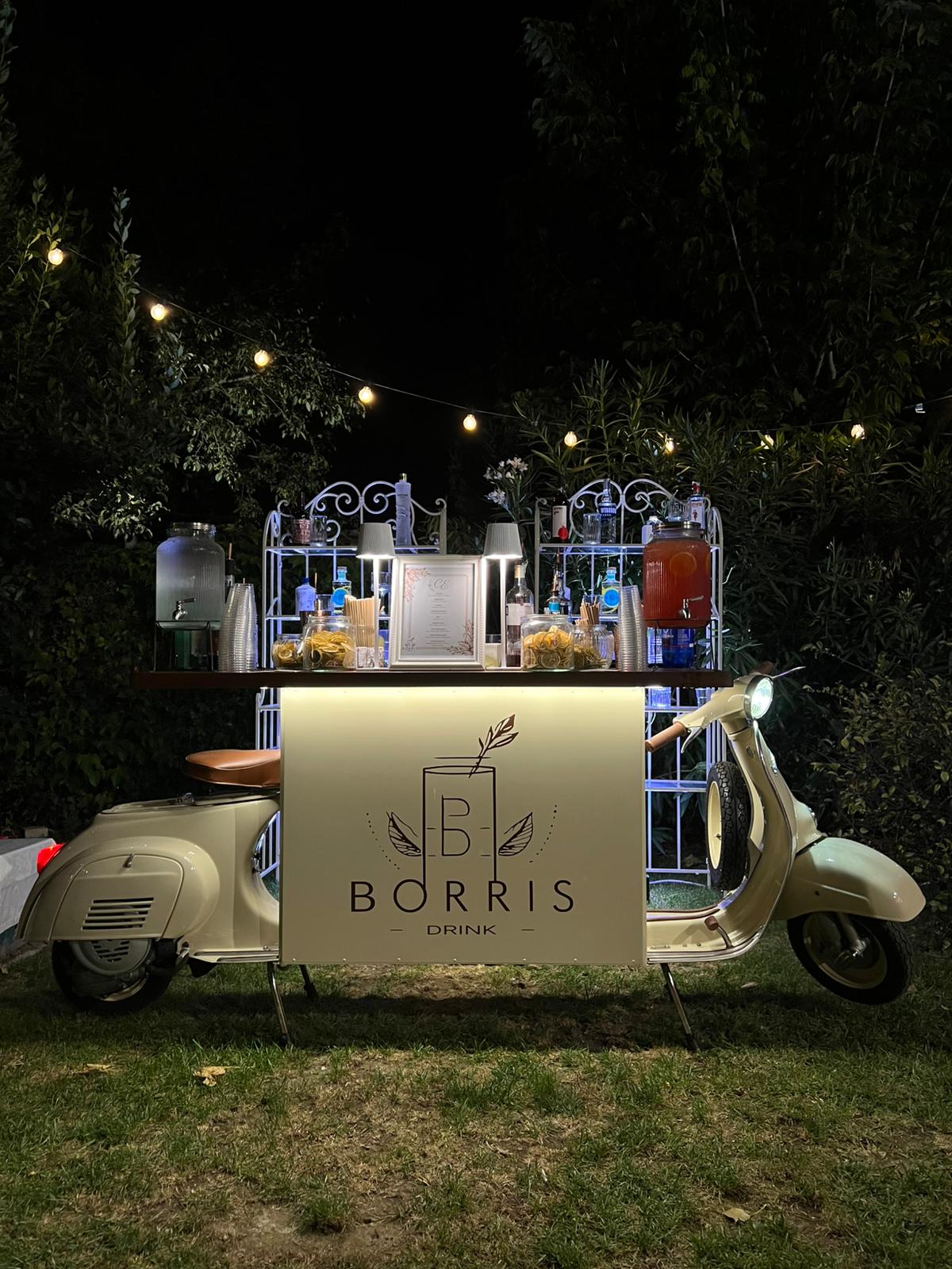 Borris Drink è un bar catering per eventi privati, feste, cene aziendali, mondo wedding ecc. Prepariamo direttamente dal nostro stupendo bancone bar Vespa i nostri buonissimi cocktail, dando un tocco di eleganza al tuo evento. Oltre al bancone vespa sono disponibili altri allestimenti.- Telefono: