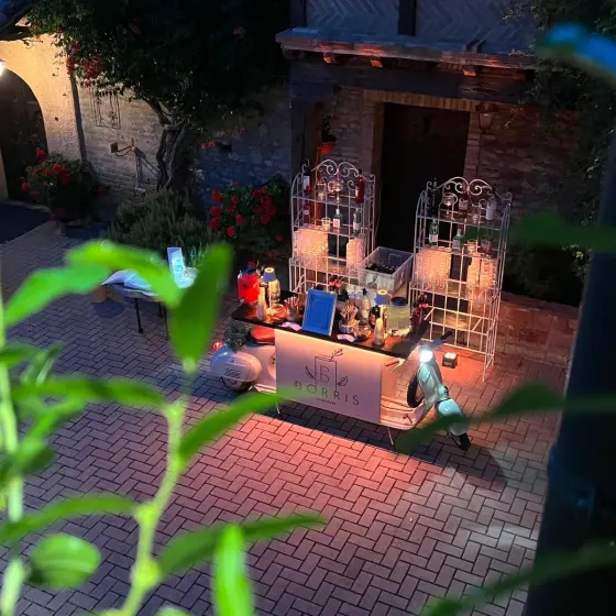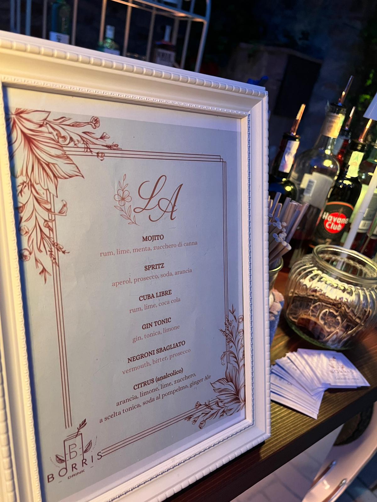 Che si tratti dell’aperitivo, dell’open bar durante il ricevimento o di un angolo dedicato ai cocktail signature, Borris Drink unisce creatività, tecnica e qualità degli ingredienti. Ogni evento è studiato nei dettagli, con allestimenti modulabili in base allo stile del matrimonio e alle esigenze degli sposi.