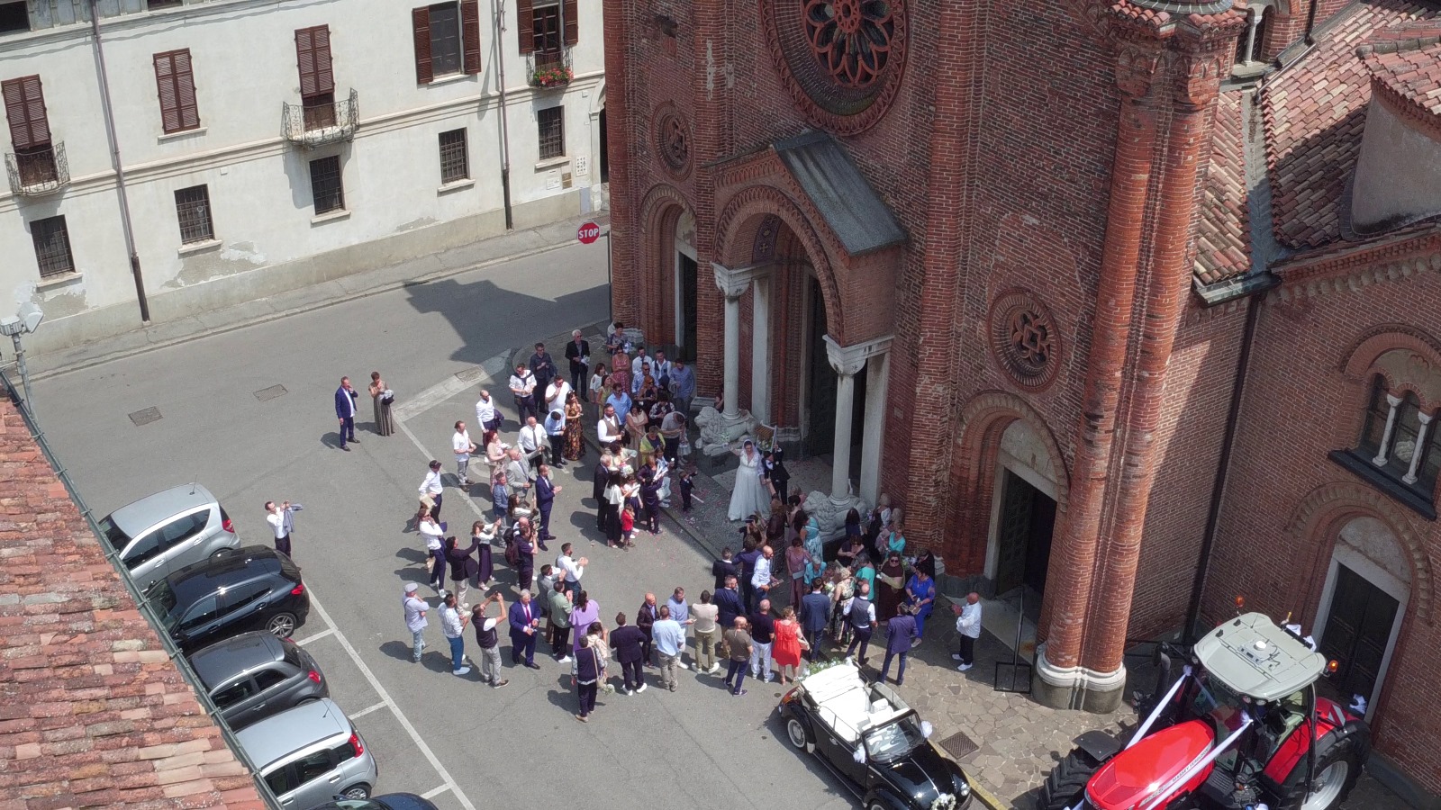 Durante la cerimonia, il drone segue la giornata con movimenti fluidi e armoniosi, perfettamente integrati con le riprese a terra, per un racconto coerente e cinematografico.