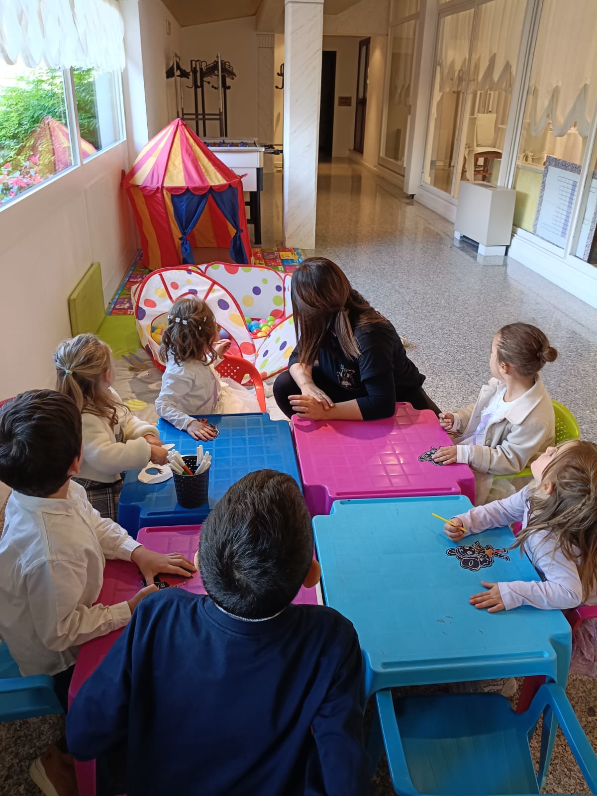 - Tavolini e sedie a misura di bambino per attività creative e merenda